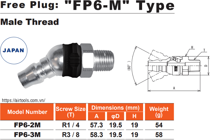 - Cút nối nhanh khí nén Kawasaki FP6-2M được trang bị nhiều hình dạng và loại cút nối khác nhau (cút nối các đầu ống) với đầu đực (kết nối đầu ren ngoài, ren trục) hay đầu cái (kết nối đầu ren trong, ren lỗ) cho phép kết nối với các đầu ren tương ứng giúp hạn chế tối đa khả năng chảy dầu v.v...
