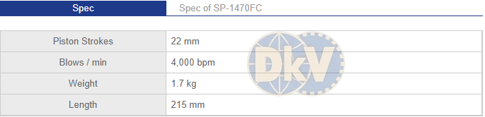 - Đục hơi khí nén SP Air SP-1470FC có số lần đập/phút: 4.000 bpm, size kết nối nguồn khí nén:1/4".