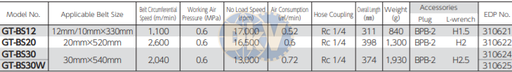 - Lượng khí tiêu thụ của máy máy mài dây khí nén Vessel GT-BS20: 600 l/phút, size kết nối nguồn khí nén: Rc 1/4".