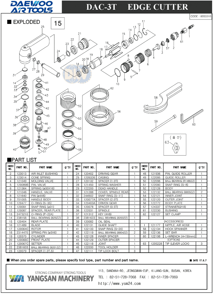 - Máy cắt góc khí nén Daewoo DAC-3T được sản xuất bởi nhà sản xuất Yangsan Machinery - Busan - Hàn Quốc. Made in Korea (CO Phòng thương mại Hàn Quốc).