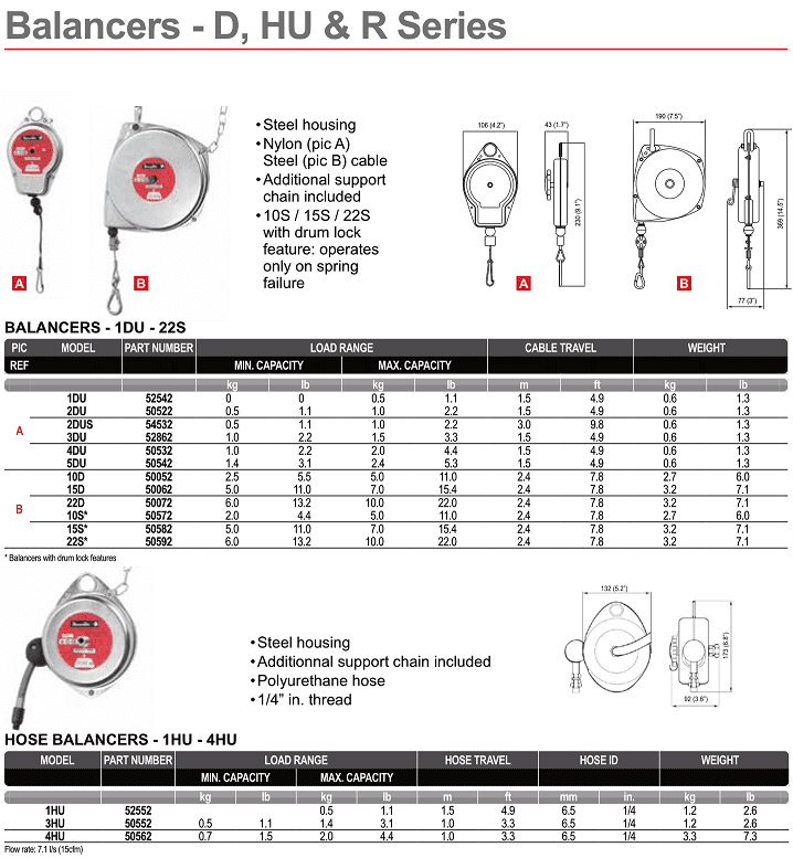 - Pa lăng cân bằng Desoutter 4DU, Desoutter sring balancer 4DU: là loại pa lăng cân bằng hay còn gọi (Pa lăng lò xo tự rút) của hãng Desoutter, có dải sức nâng từ: 1 - 2 kg , hành trình cáp: 1.5 m, chuyên dùng để treo các loại súng điện, khí nén hoặc vật dụng trong nhà xưởng, cần thao tác nhanh.