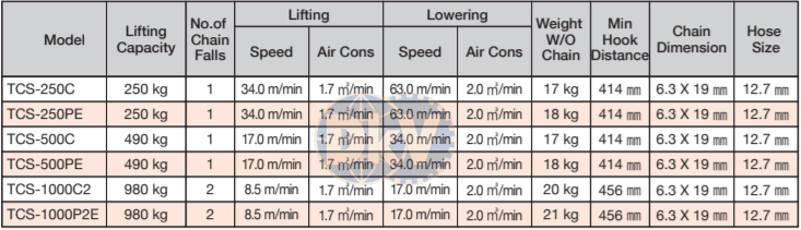 PA LĂNG XÍCH TAY KHÍ NÉN TOKU TCS-500PE | TOKU AIR HOISTS TCS-500PE | 0.49 tấn